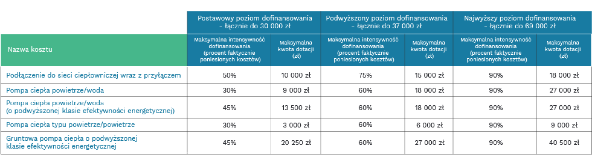 - zakupienie i zamontowanie źródła ciepła z przeznaczeniem na ogrzewanie,