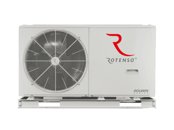 Monoblock to typ konstrukcji, który integruje moduł chłodniczy i hydrauliczny w jednej obudowie, dostępnej w wariantach jedno- lub dwu-wentylatorowych, co zapewnia łatwy dostęp do wszystkich elementów. Główną zaletą pompy Rotenso monoblock jest eliminacja potrzeby wydzielania przestrzeni na hydrobox wewnątrz budynku, co czyni ją idealną dla mniejszych domów bez dedykowanego pomieszczenia technicznego. Sterownik pompy, jedyny element montowany w środku budynku, umożliwia łatwą obsługę i monitoring pracy całego systemu.